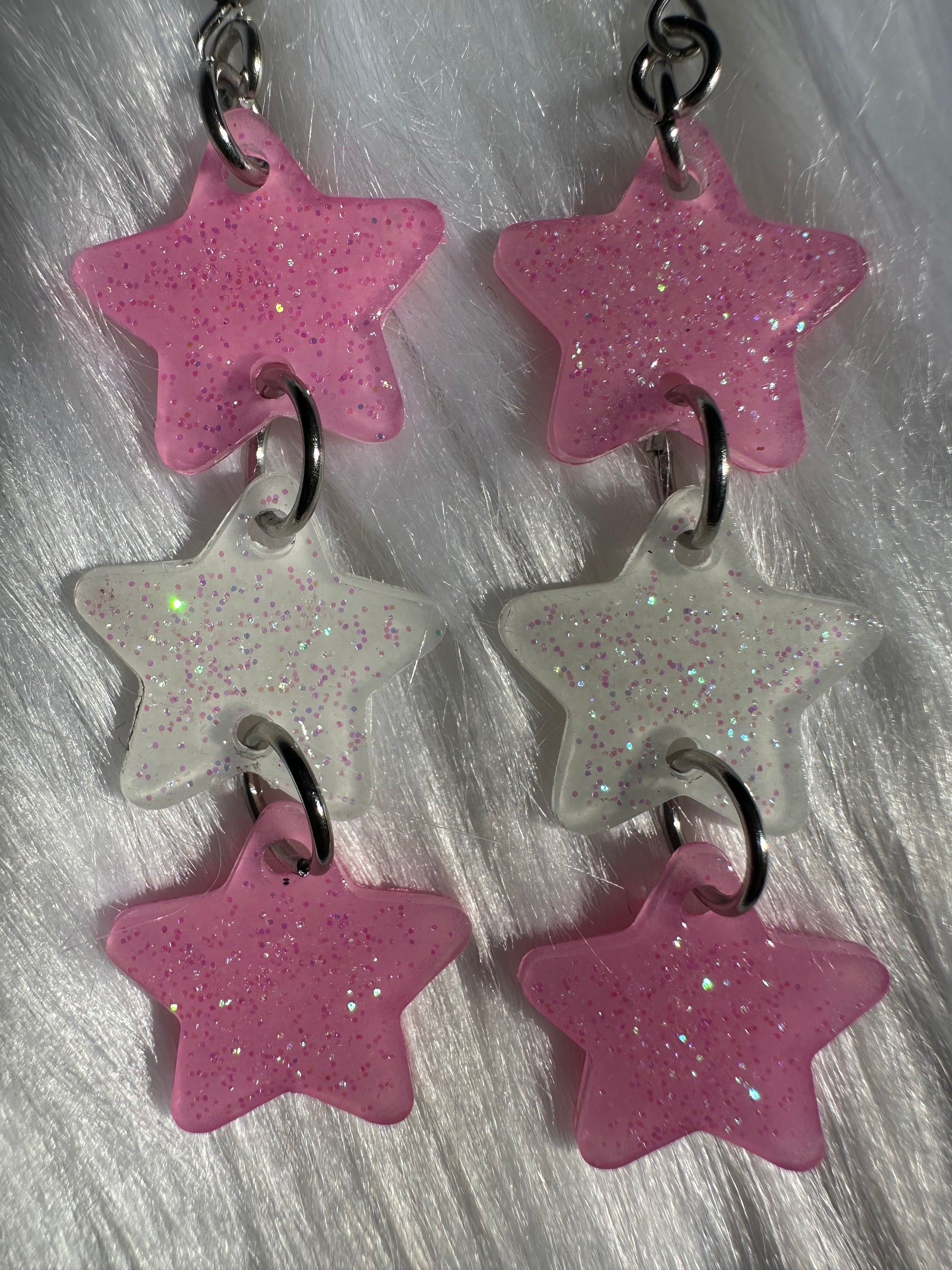Three tier baby pink star earrings with stainless steel findings 🌟 Handmade, hand painted <3