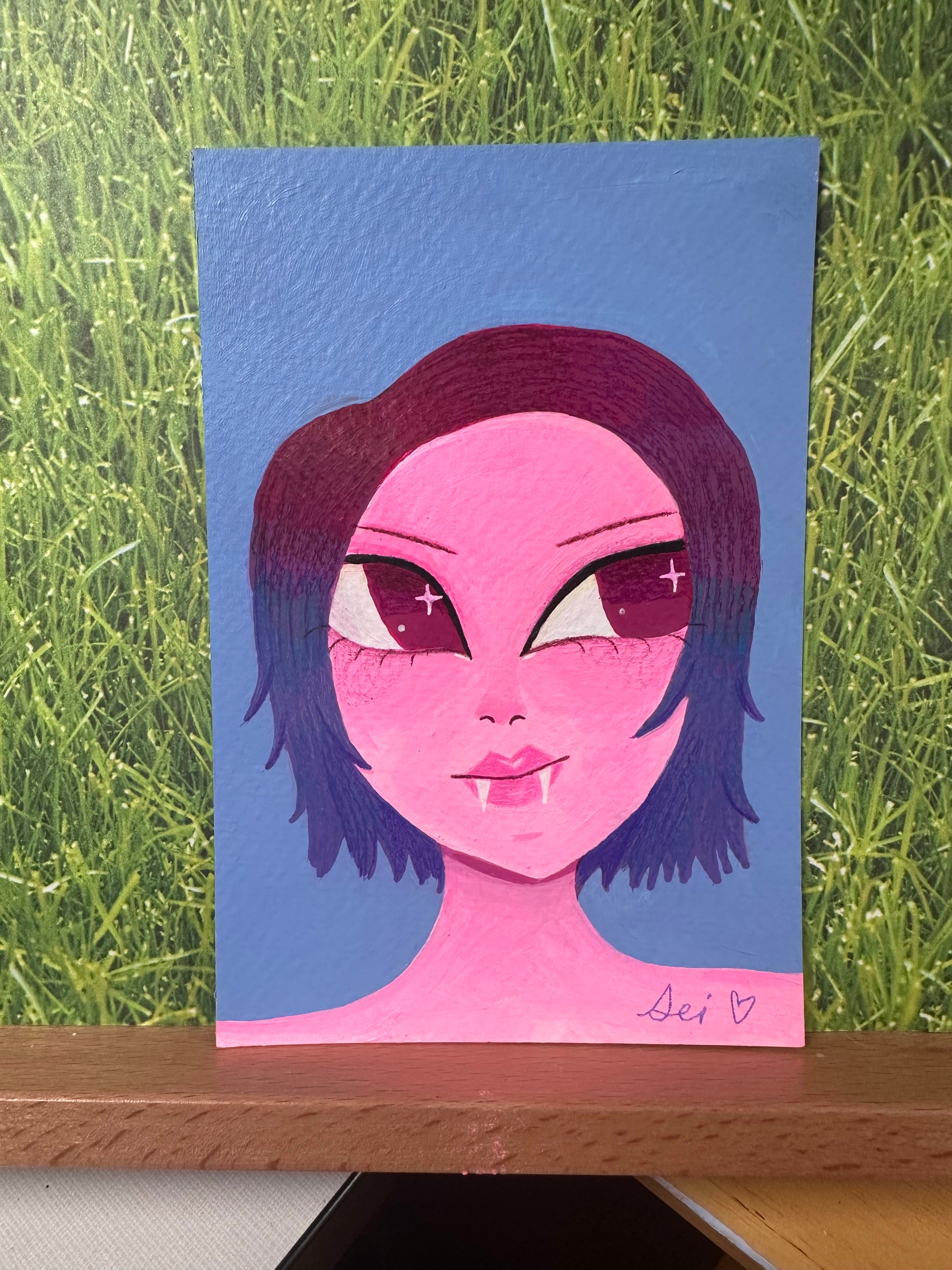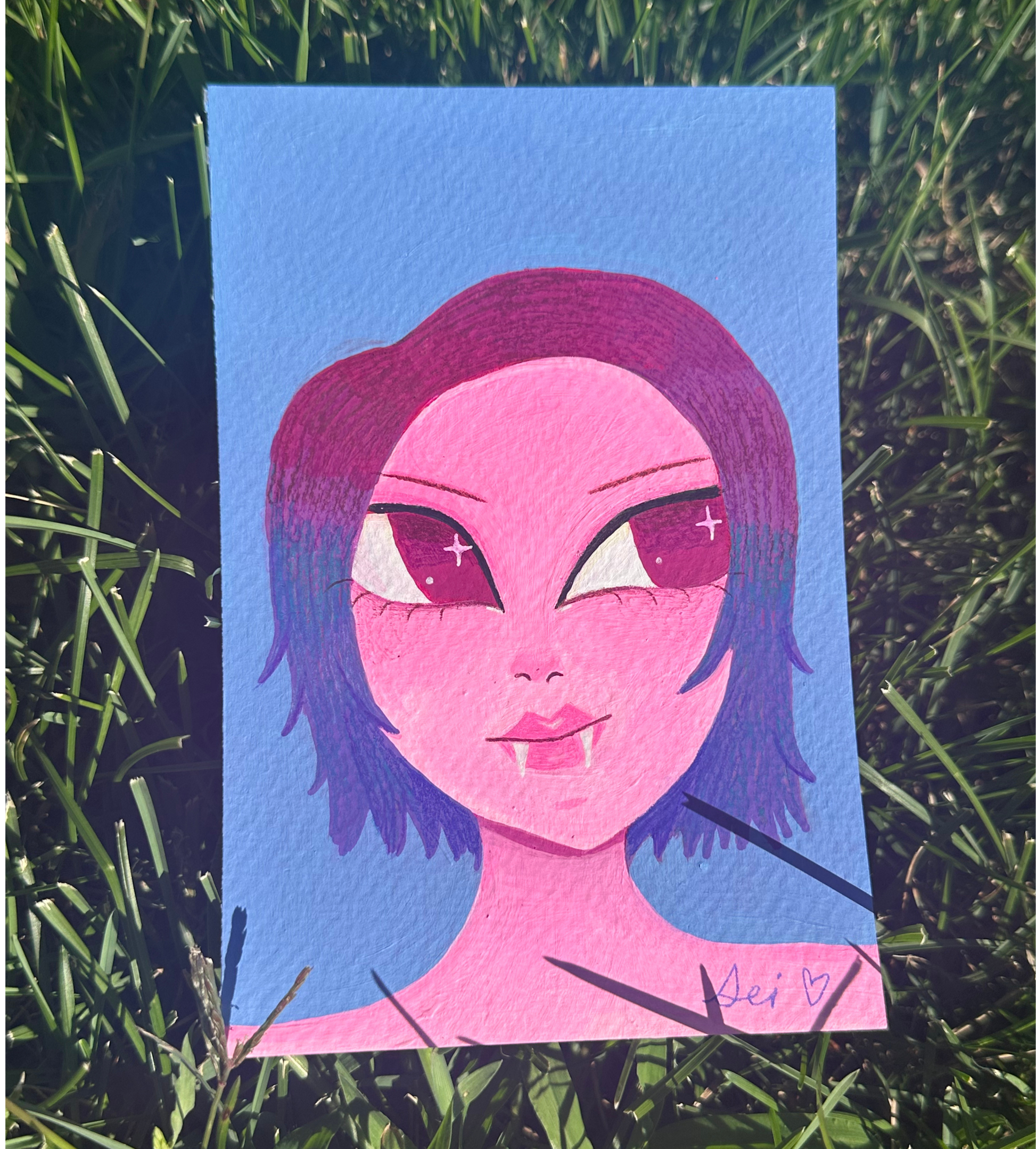 4x6 acrylic and colored pencil portrait on watercolor paper <3