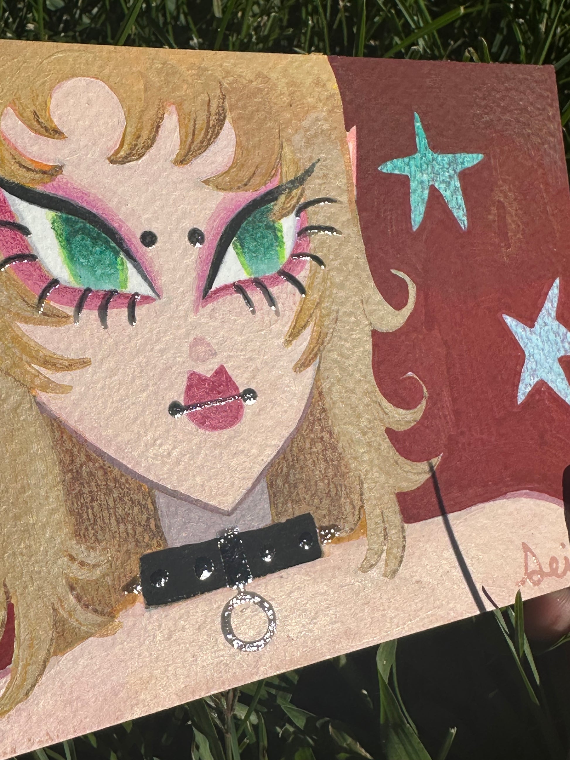 4x6 acrylic and colored pencil portrait on watercolor paper <3