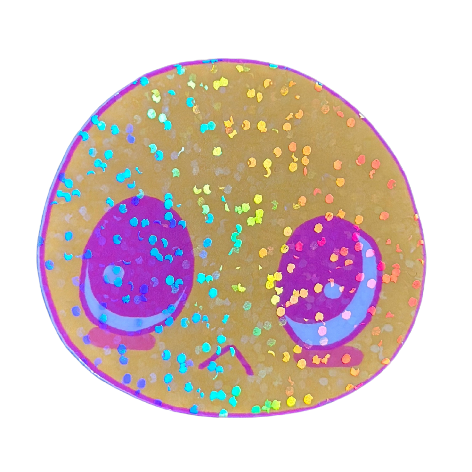 Add a pop of cuteness to your life with our epic sheepish sticker! This 3 inch holographic sparkle emoji sticker is sure to bring a smile to your face. Stick it on your laptop, water bottle, or anywhere that needs a little extra cuteness. 😍✨